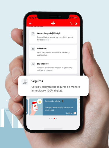 Para más información ingresá a www.santander.com.ar/seguros. Agente Institorio: Banco Santander Argentina S.A. inscripto en la SSN N° 139, Av. Juan de Garay 151 -CABA. Superintendencia de Seguros de Nación: Tel.: 0800-666-8400 - www.argentina.gob.ar/ssn. Los accionistas de Banco Santander Argentina S.A. no responden en exceso de su integración accionaria.